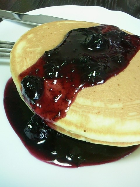 実家から送られてきたブルーベリージャムをぶっかけて食べました。